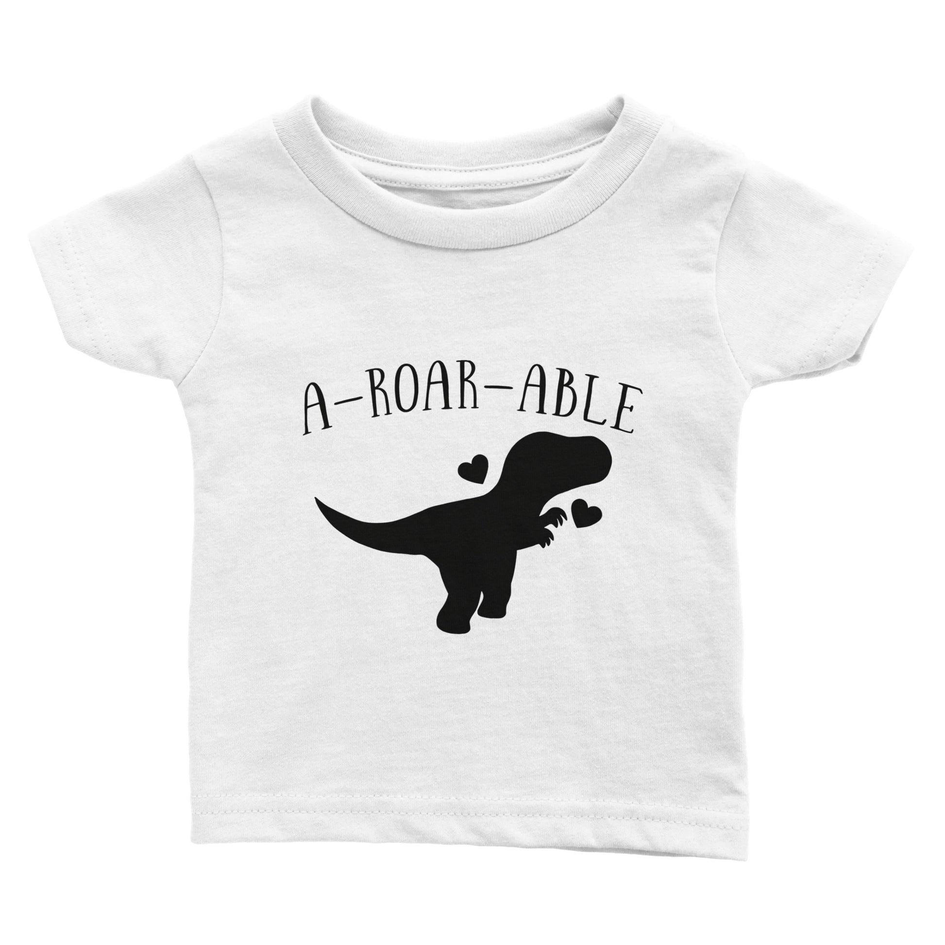 Dress your little one in our A-roar-able tshirt and watch them transform into a cute and cuddly dinosaur. With an adorable design and playful word play, this shirt is perfect for any baby. Bring out the inner dino in your child and let them roar with cuteness!